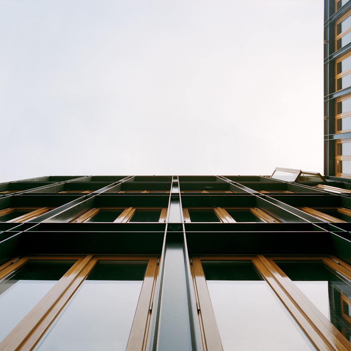 The building encloses an inner courtyard on three sides and covers the entire depth of the building block. The open, glazed courtyard facades contrast with the rather closed street facades, whose height, design, materiality and detailing fit into the adjacent environment. The new building becomes an integral part of the existing building block and naturally complies with the urban fabric of the quarter. The ten apartments in the upper segment vary in size between 100 m² and 300 m². An underground car park is located in the basement of the building.