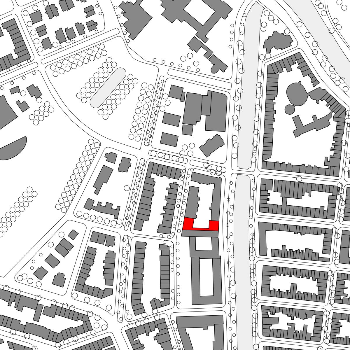 In Amsterdam’s Oud-Zuid district, where a narrow side-street used to connect the Pieter de Hoochstraat with the Hobbemakade, the five-storey residential building replaces a part of the post and telecommunications office set up in 1909.