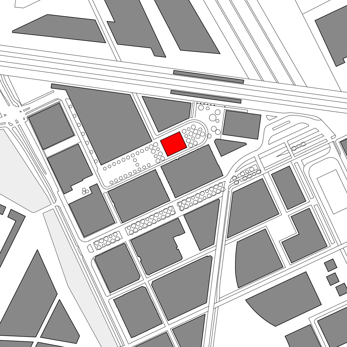 The Leidsche Rijn Centrum district, a densely populated urban expansion location, forms an important link between Utrecht’s city centre and the Vinex districts to the west. Centrally located on the Brussel-square is a solitary public building, which houses the Leidsche Rijn central library, a café and the district office. The central position on the square has an inviting character and underlines the social function that the library and the district office fulfil as a hub in the new centre.