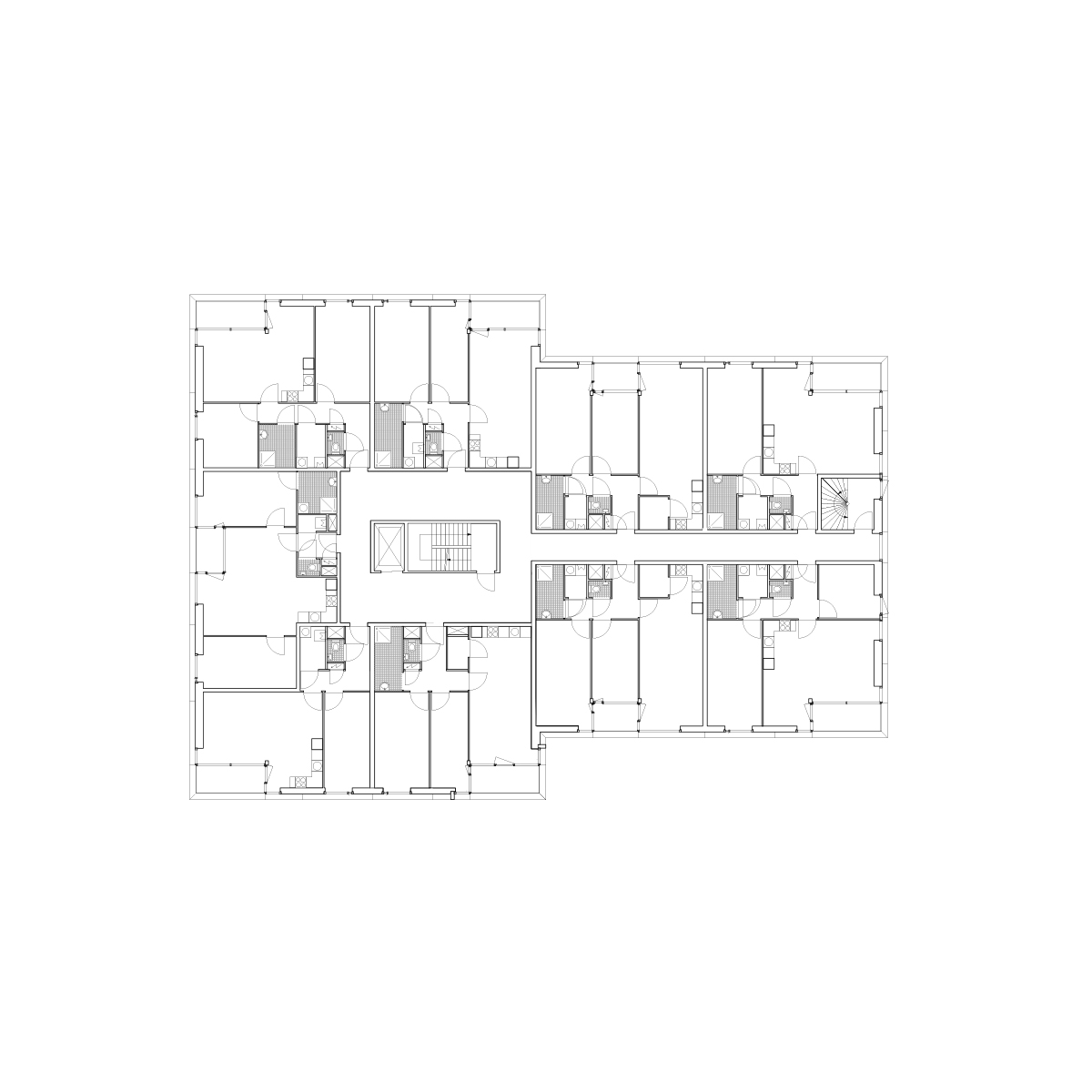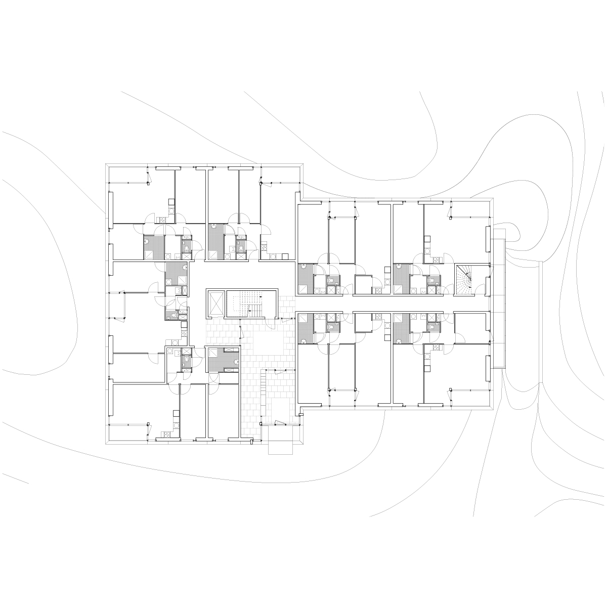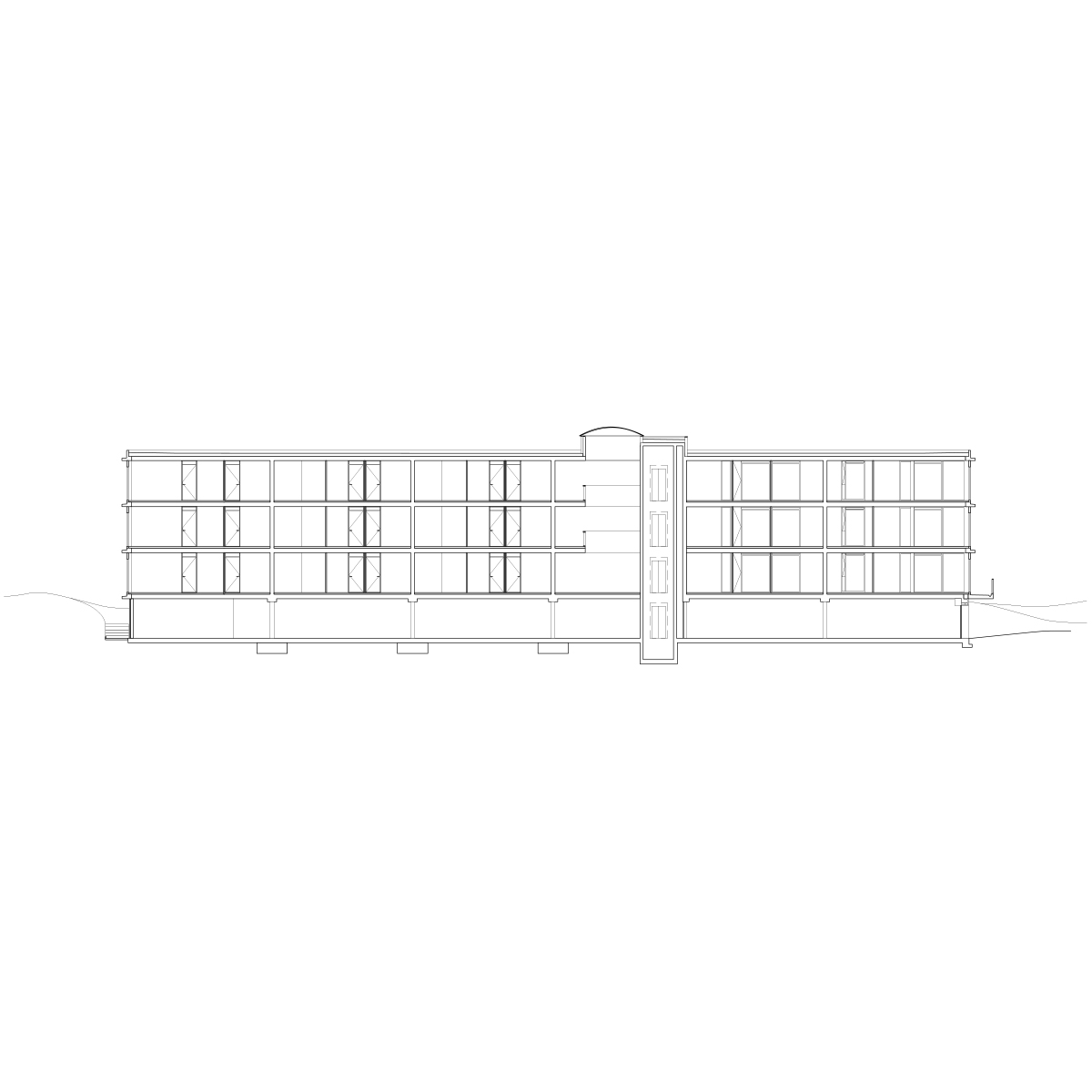 As part of the redevelopment proposal for a former psychiatric hospital built in 1849 in a beautiful landscaped park designed by Zocher Jr. at the foot of the dune forest of the Zuid-Kennemerland National Park, Rapp+Rapp planned an extension with 130 housing units. The residential buildings, Parkzicht 1 + 2, are part of a total of four apartment buildings that are situated within this expansion around the existing monumental main building. The buildings have three storeys with a striking horizontal articulation and are positioned in such a way that they seem to float above the sloping landscape.