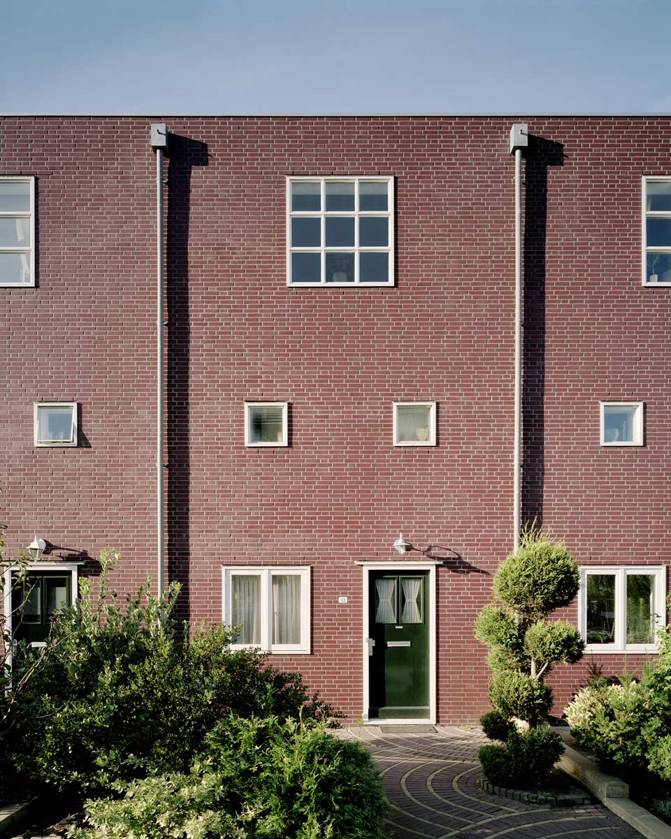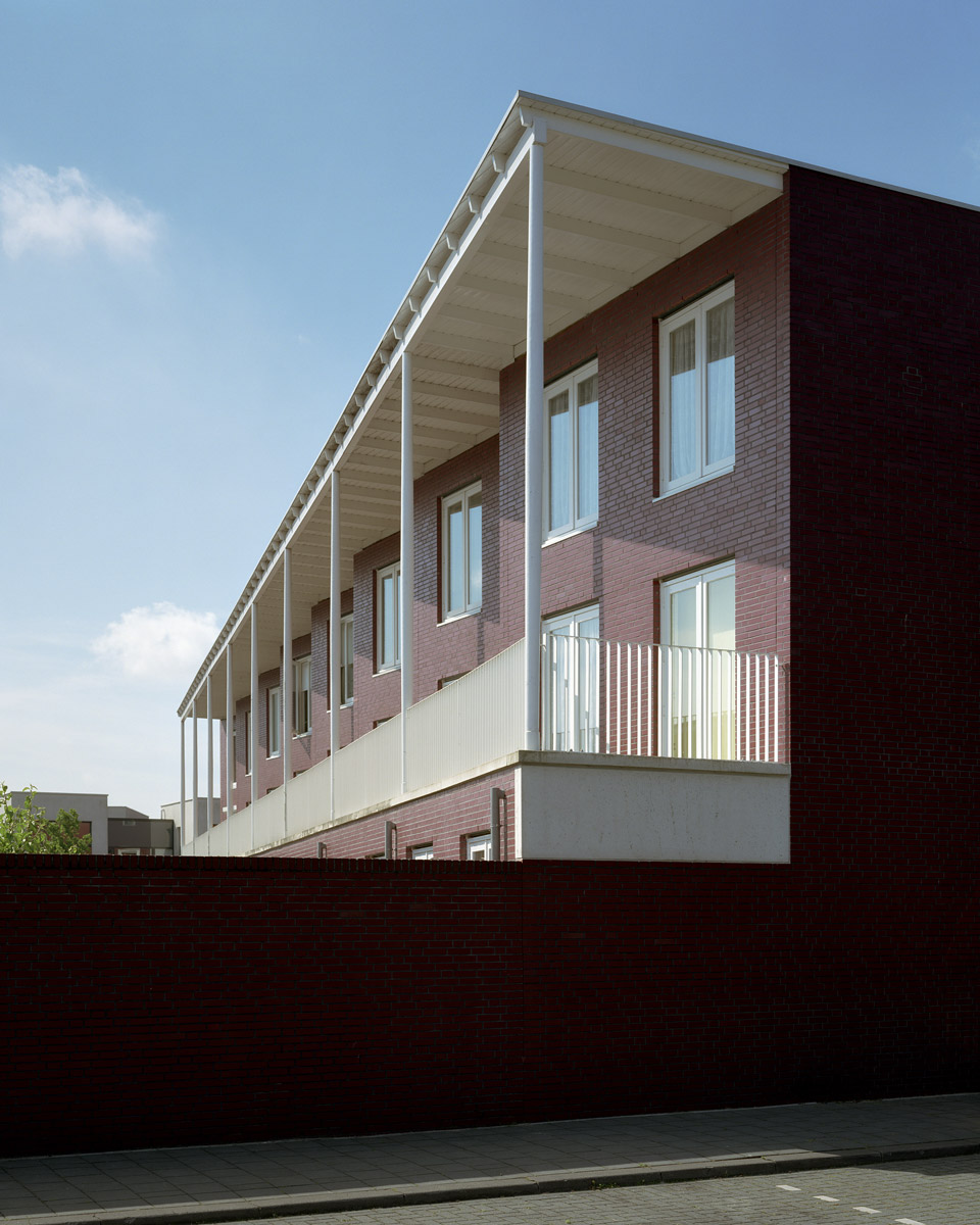 One of the key points of the design process was to address the transition between public and private. The houses with private gardens are arranged back-to-back over ten rows of houses, separated from their direct environment by a single-storey wall. The houses face each other and shape publicly accessible ‘inner courtyards’. Characteristic for the design of the houses are the spacious balconies with verandas. The individual houses are distinguished by the fact that each house has been given its own face with its own characteristic element.