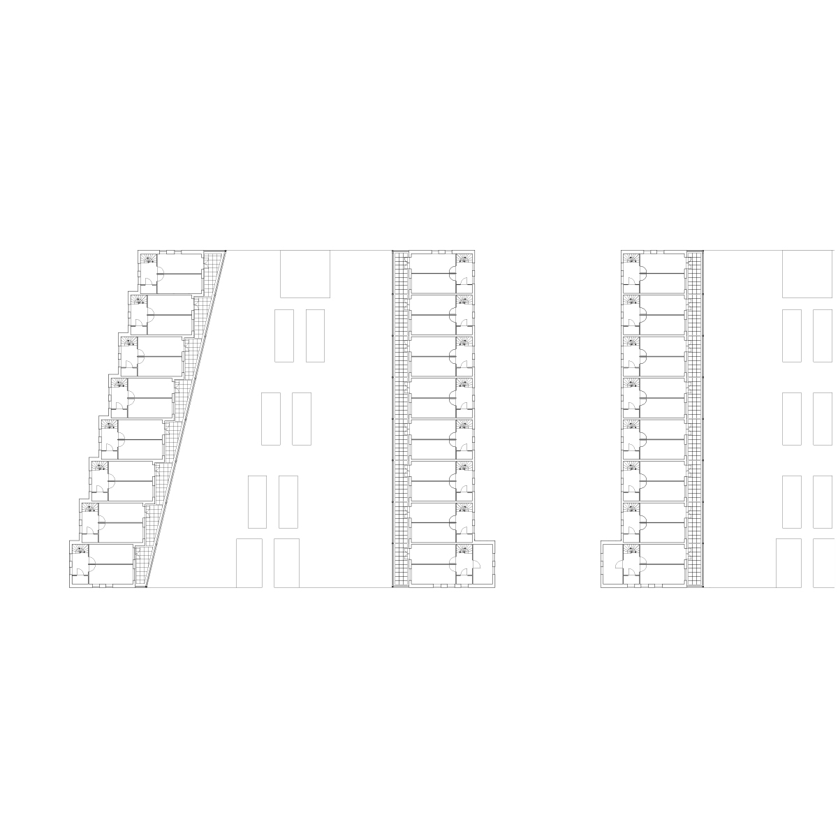 Mitte der 1990er Jahre führte die Stadt, im Rahmen einer Aufwertung des lokalen Wohnumfelds, verschiedene innerstädtische Umstrukturierungen aus. Innerhalb dieser Maßnahme entwickelte Rapp+Rapp 80 zweigeschossige Einfamilienhäuser am Nordrand eines ehemaligen Industriegebietes. Ein transparenter „Stadtrücken” aus Wohneinheiten, gelegen an einer Stadtstraße, sollte den Übergang zum südlichen Teil des Plangebietes markieren.